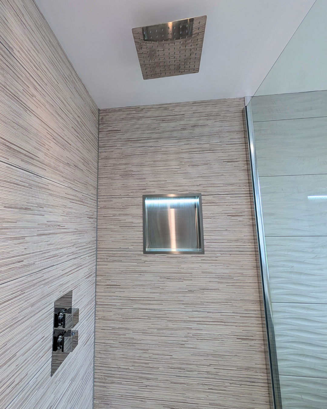 Inside the enclosure is the large overhead shower head with a rainfall effect, which delivers an all over soothing and luxurious experience for the user.