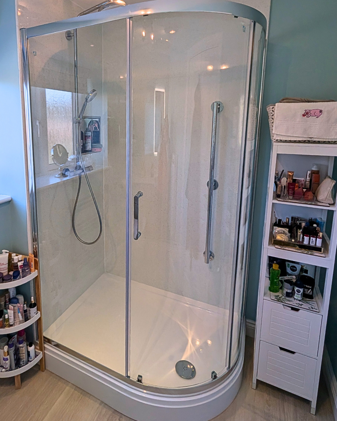 Inside the shower enclosure you’ll find the wet wall panels from Nuance in White Quartz. These panels are 100% waterproof and feature a trim-less finish, resulting in a sleek finish. Not only do they enhance the rooms aesthetic, they simplify cleaning – just a quick wipe with soapy warm water and you’re done! Unlike porous grout lines found around tiles, these panels help prevent mould and mildew, creating a cleaner and hygienic environment.