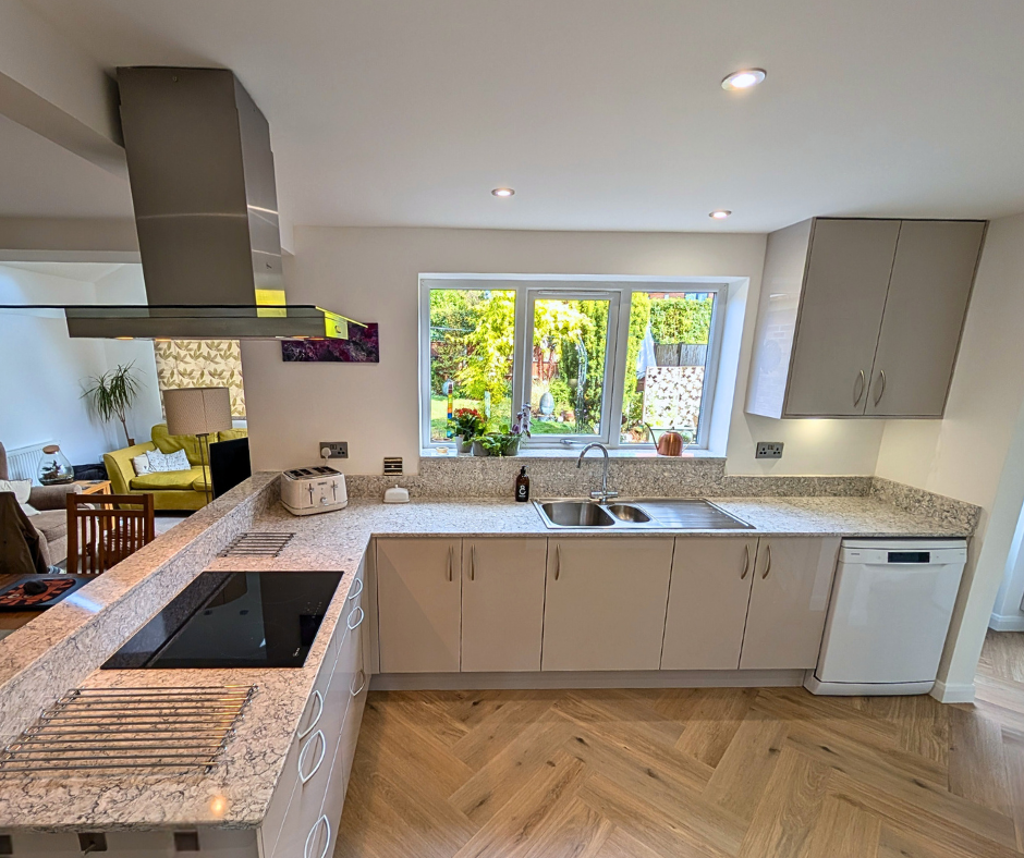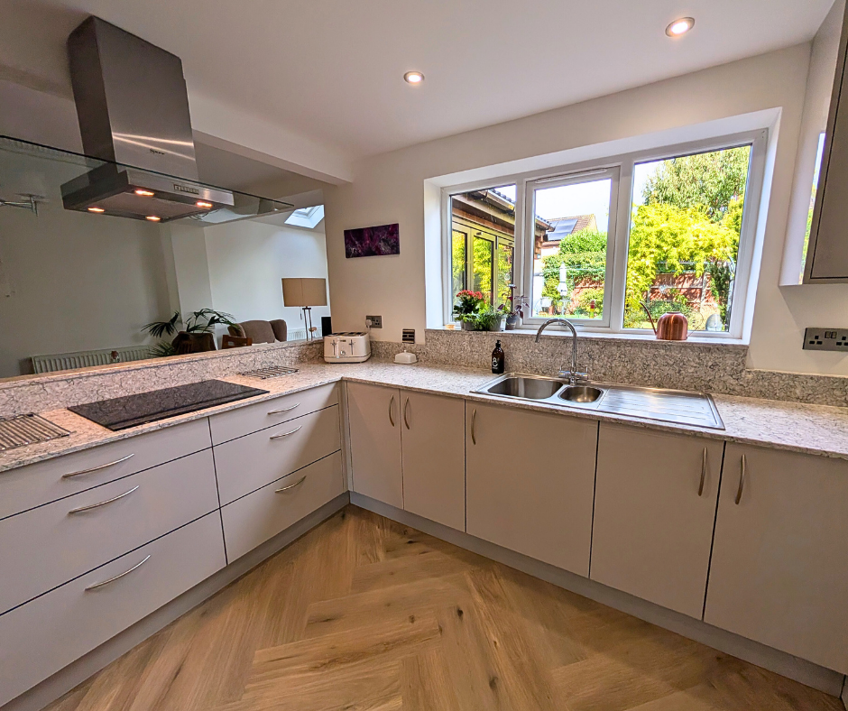 Completing the kitchen is the Karndean Canadian Urban Oak Herringbone flooring. The rich brown hues of the floor brings the kitchen to life and encapsulates the warmth.